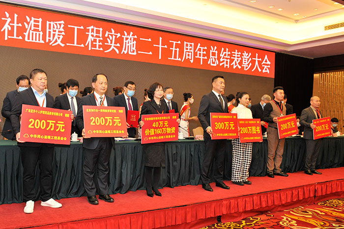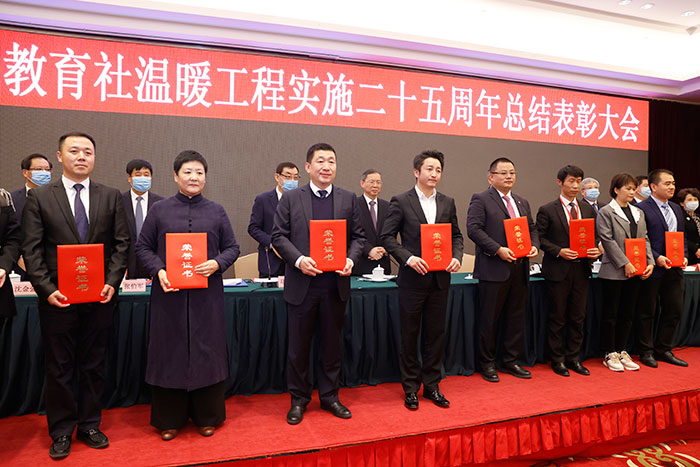 在大會上,中華職業教育社黨組書記、總干事方乃純作溫暖工程實施二十五周年總結報告,中國慈善聯合會副會長兼秘書長劉福清、中華思源工程扶貧基金會副理事長兼秘書長李曉林分別致辭。
